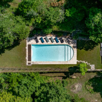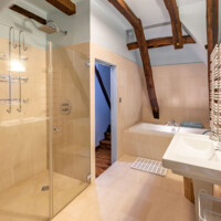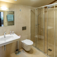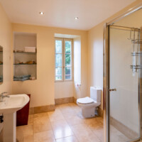 - Bathroom 5 (Tower Bathroom) – shower, views of the pool and the garden area.